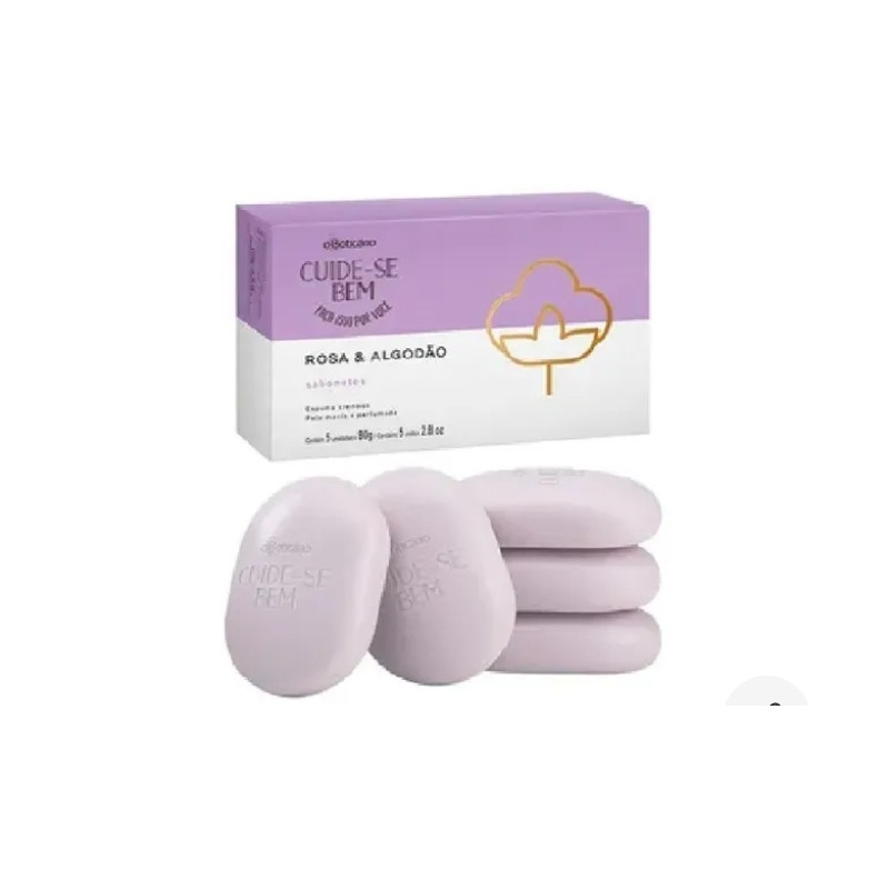 Verdadeiro carinho para sua pele! O kit de sabonetes Rosa & Algodão é feito com extrato naturais de rosas e algodão numa linda caixinha.